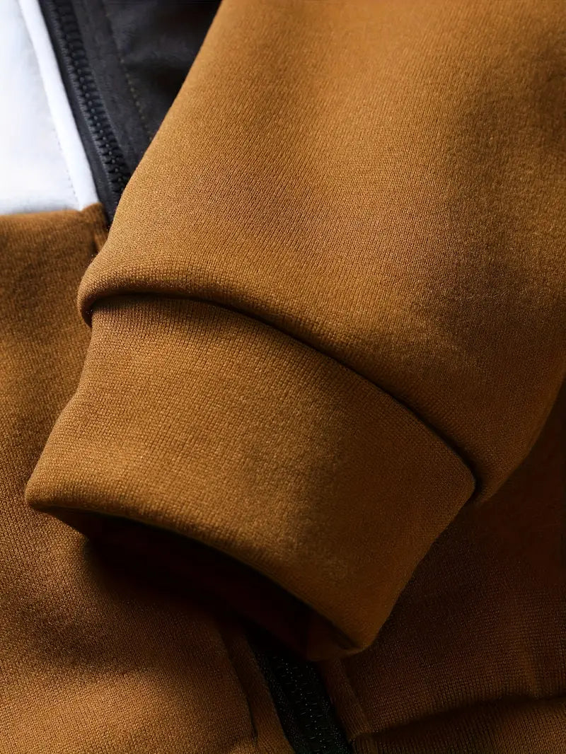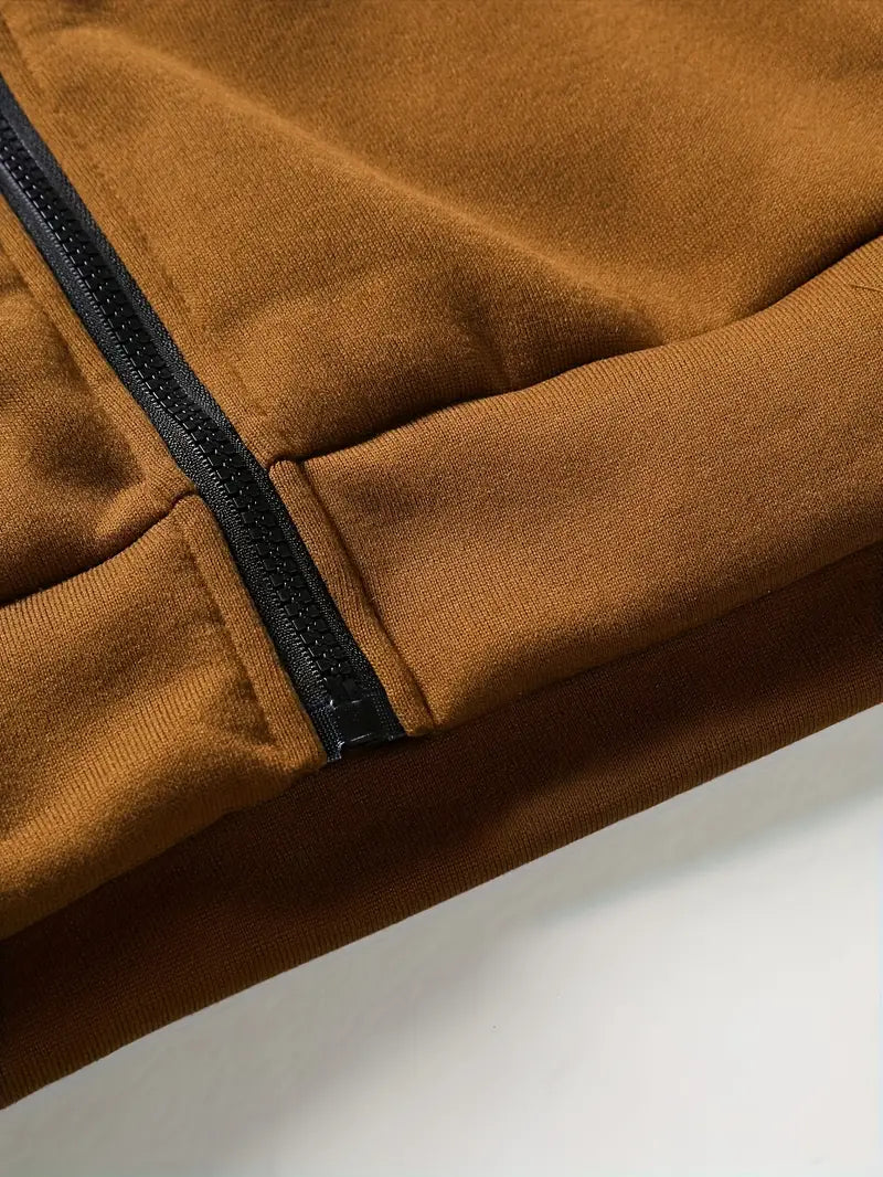 Men's Athletic 2Pcs Tracksuit Set(Light Brown) (Casual) Full-Zip Sweat suits Long Sleeve Hoodie and Jogging Pants